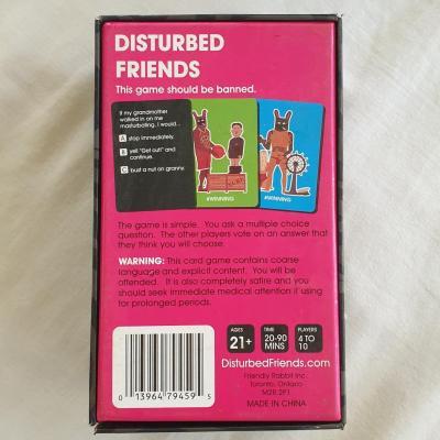 Great for game nights with friends who aren't easily offended! This set includes 241 of the original 250 question cards (9 are missing), along with all other components. The box has slight damage but is still intact.