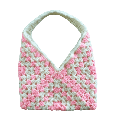 Adorable handmade crochet granny square bag with lining, ideal for ages 4 to 10. Measuring 30cm x 23cm.